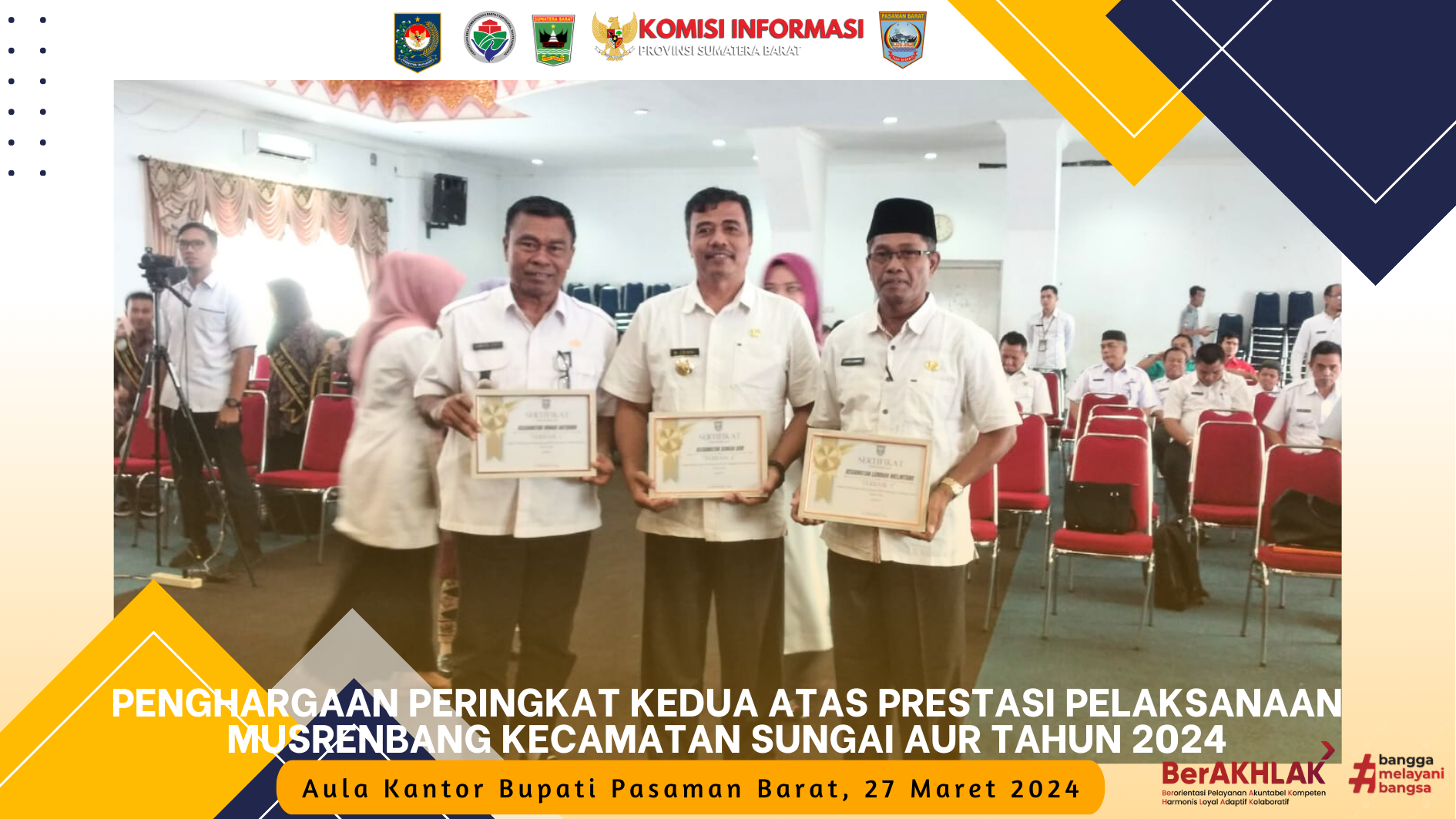 Kecamatan Sungai Aur Raih Penghargaan sebagai Pelaksana Musrenbang Tercepat Kedua di Kabupaten Pasaman Barat Tahun 2024